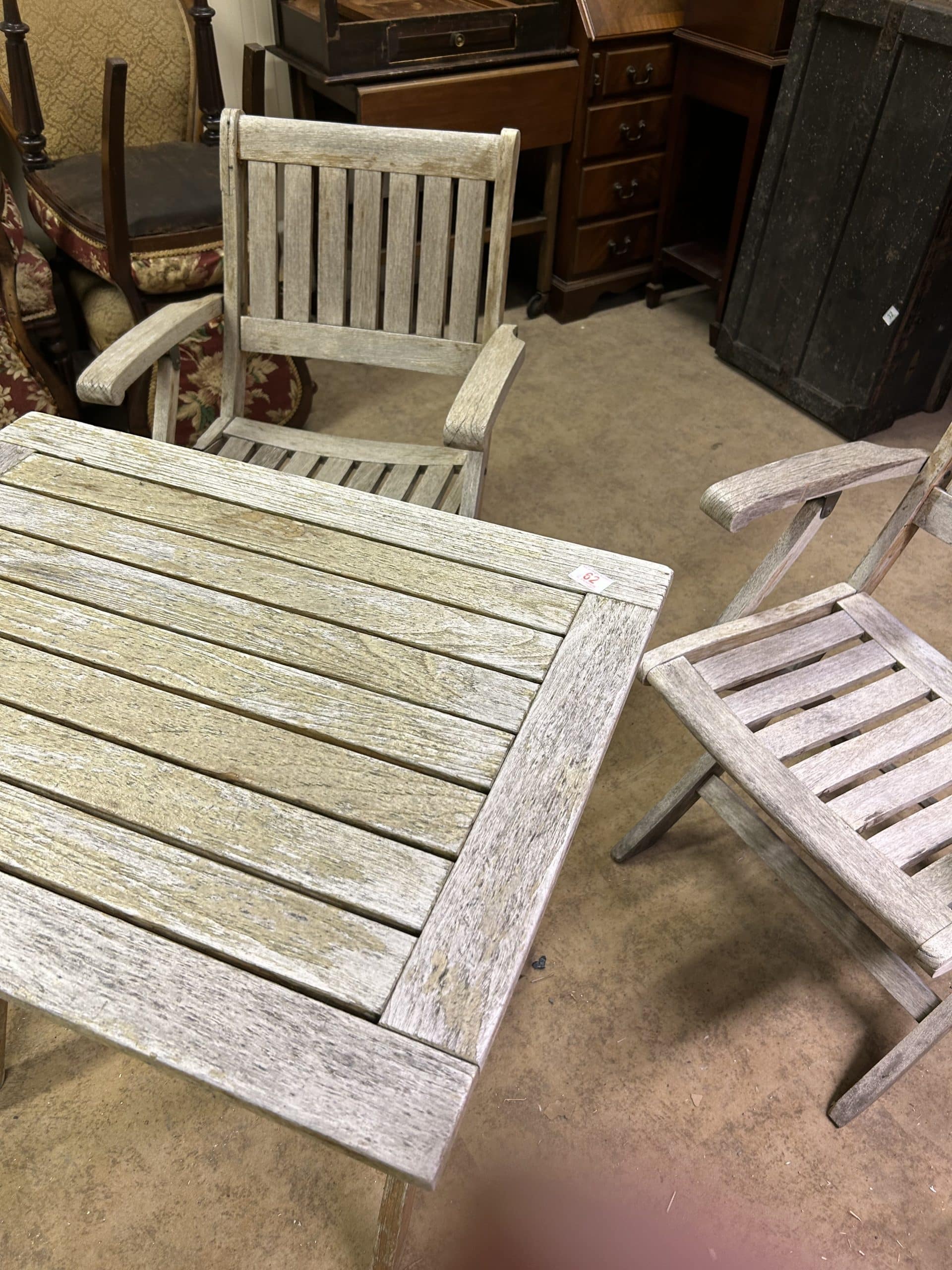 JTA Auction| Item description: | Wooden garden table with two matching chairs in used condition |