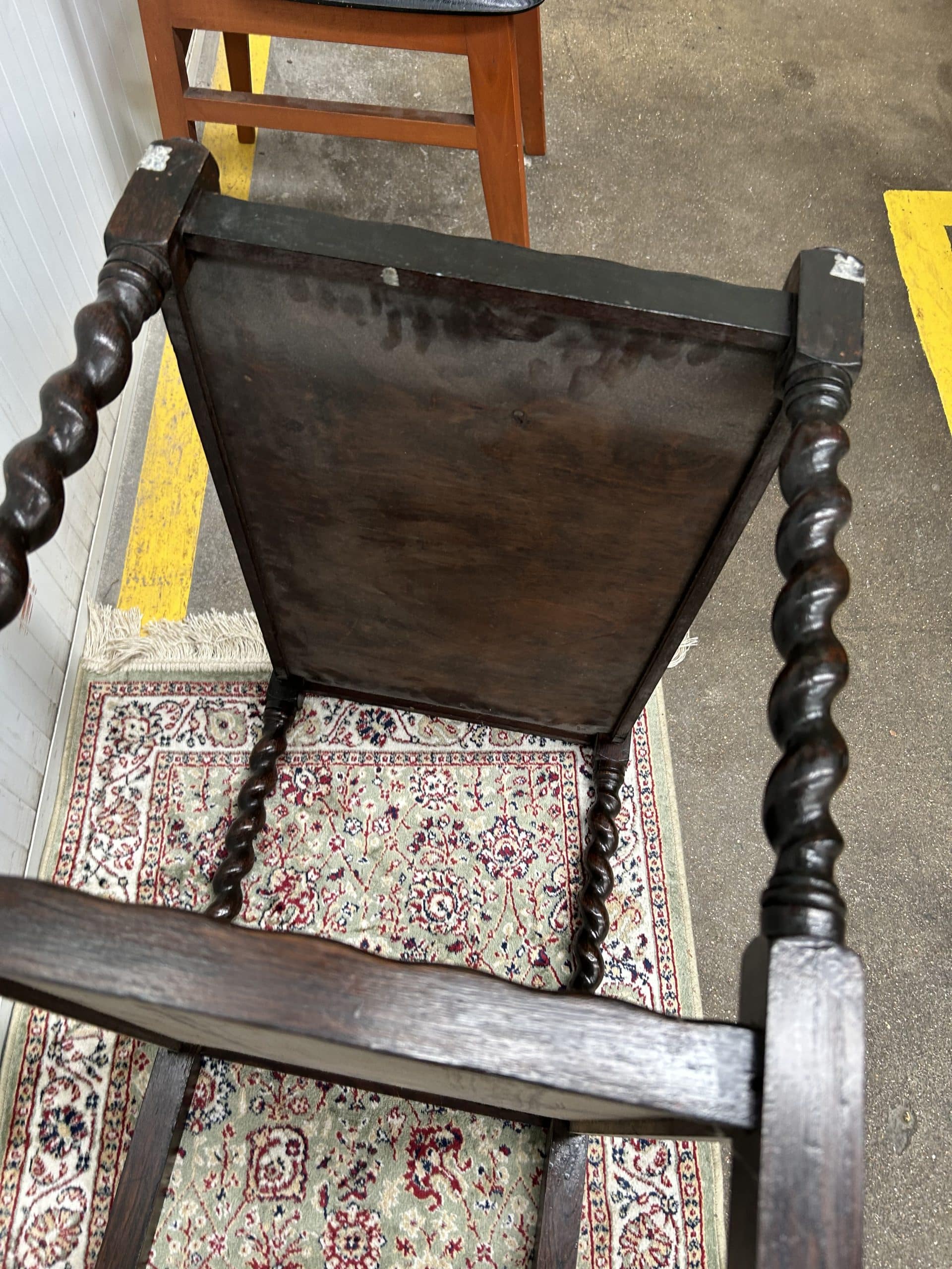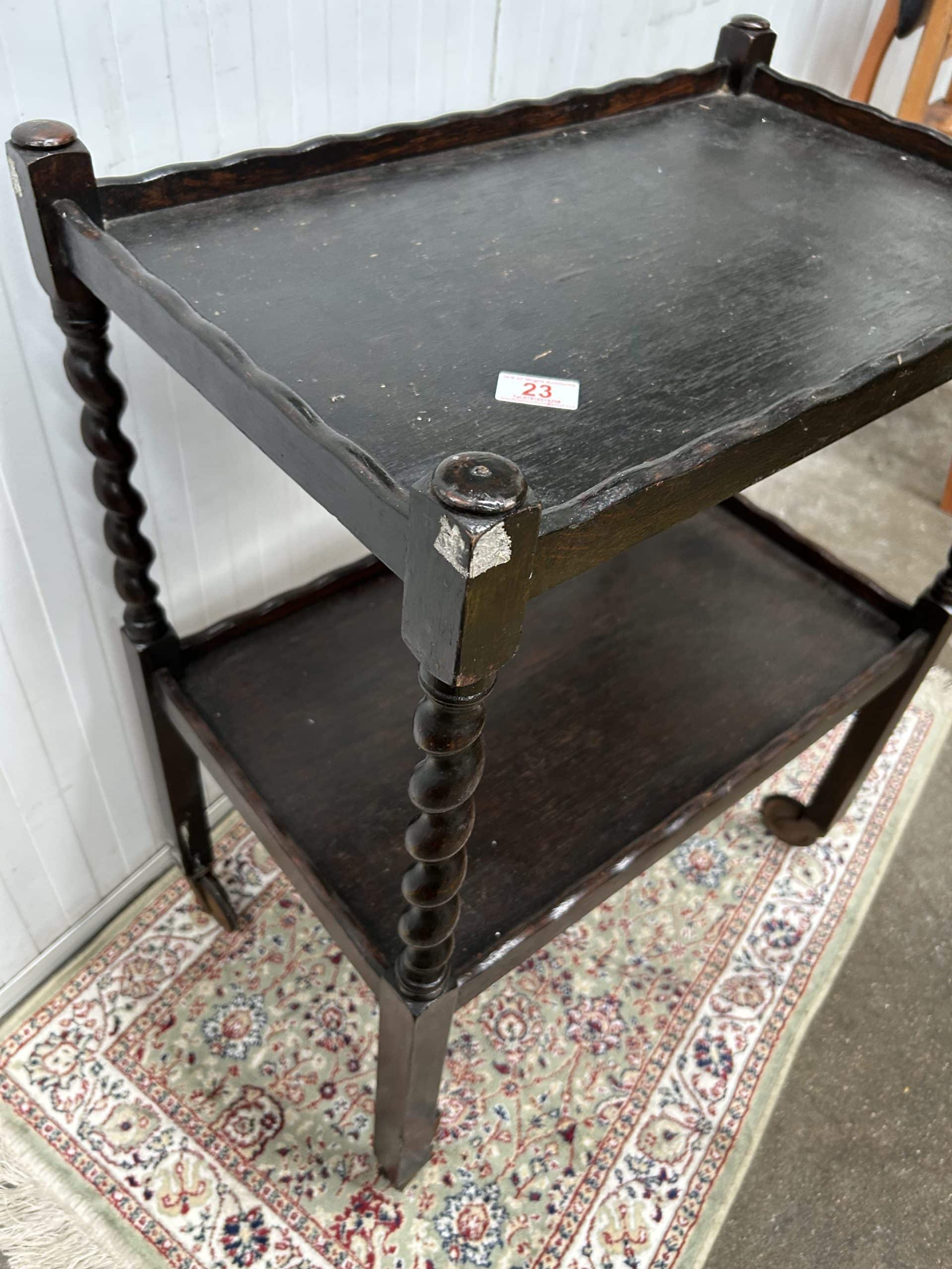 Tilly’s Auction (Part 2)| Item description: | Antique Oak Tea Trolley 1920’s / 30’s barley twist or Jacobean legs with pie crust or wavy edges on original castors (carpet not included) |