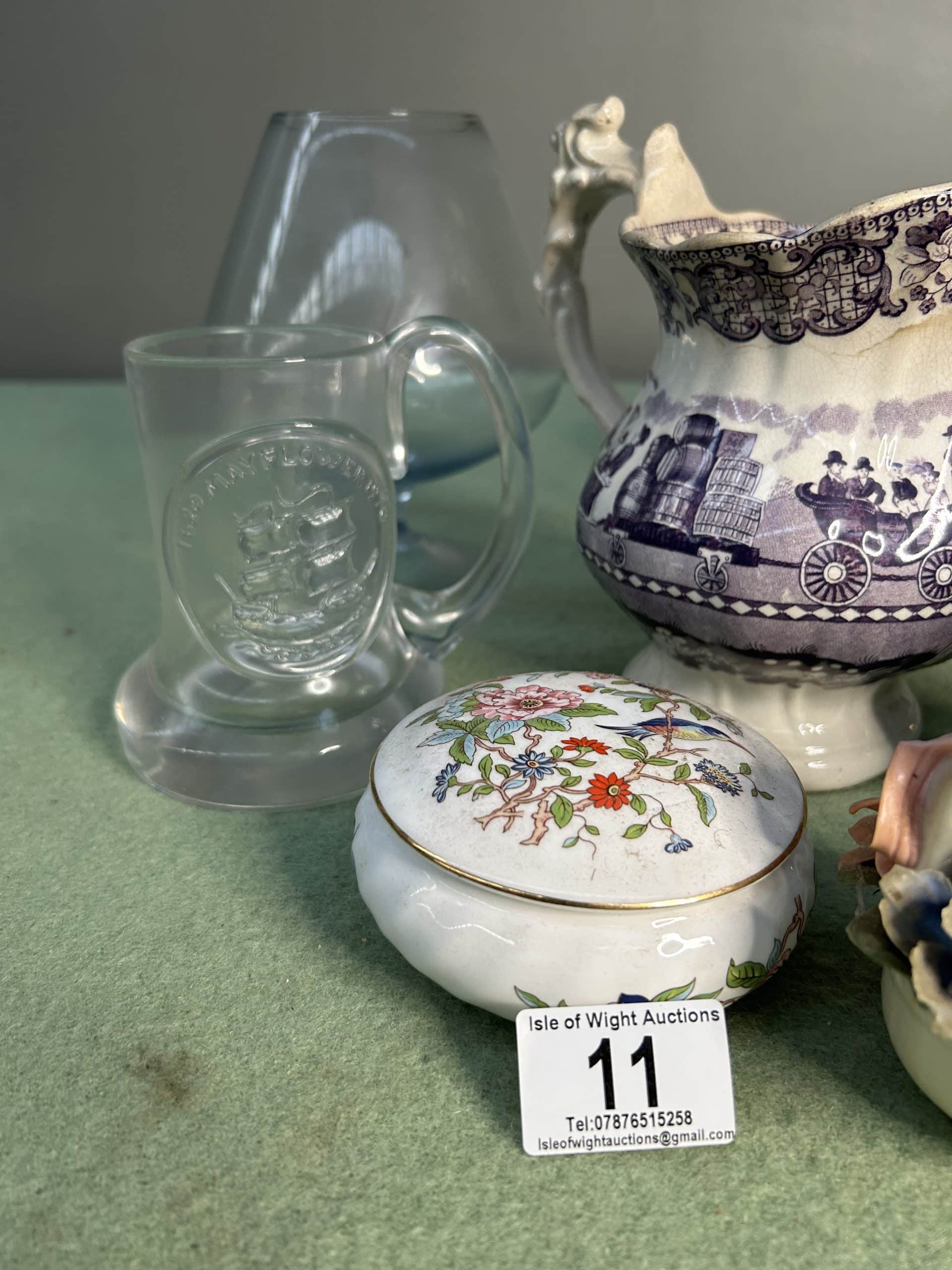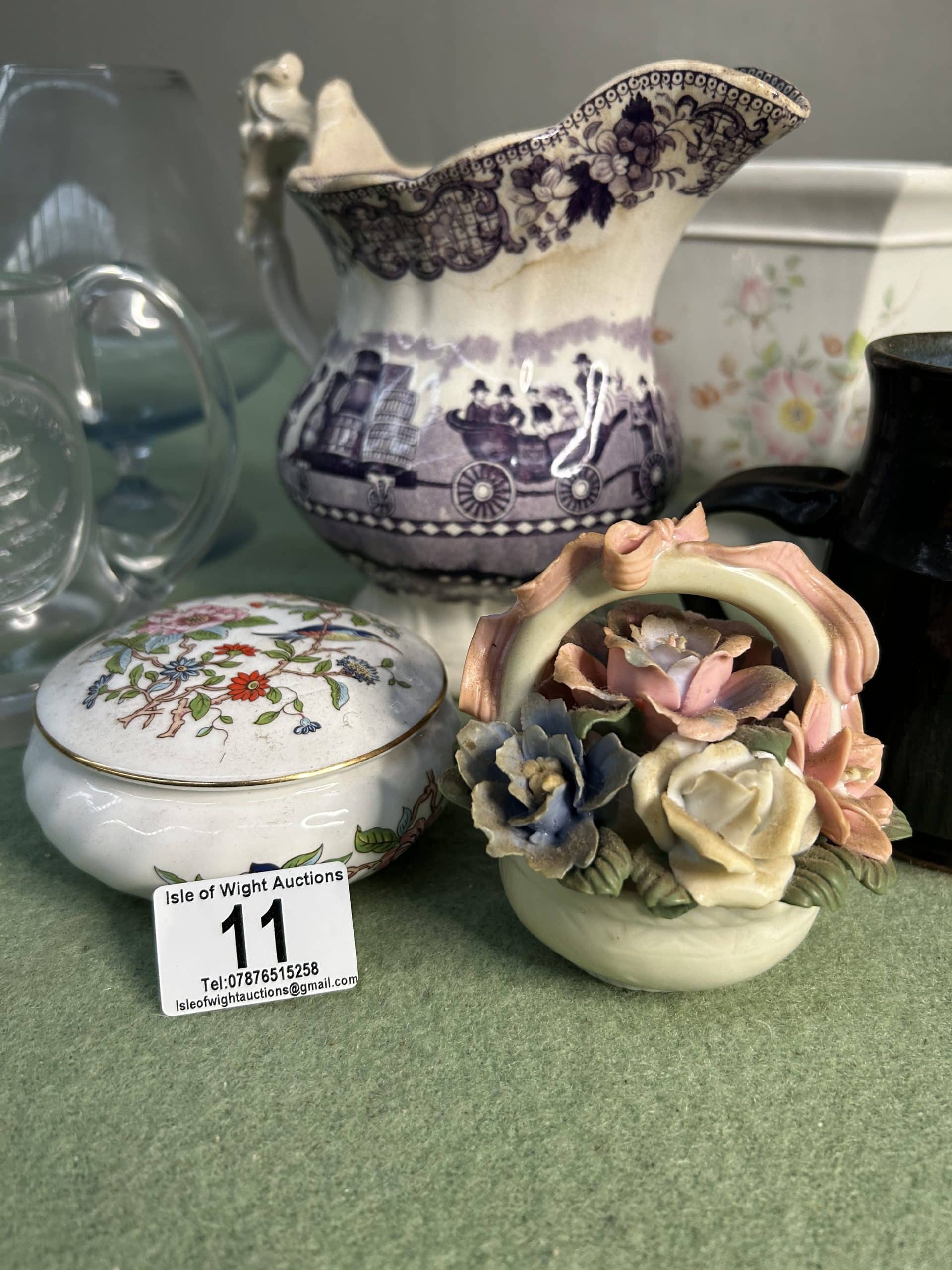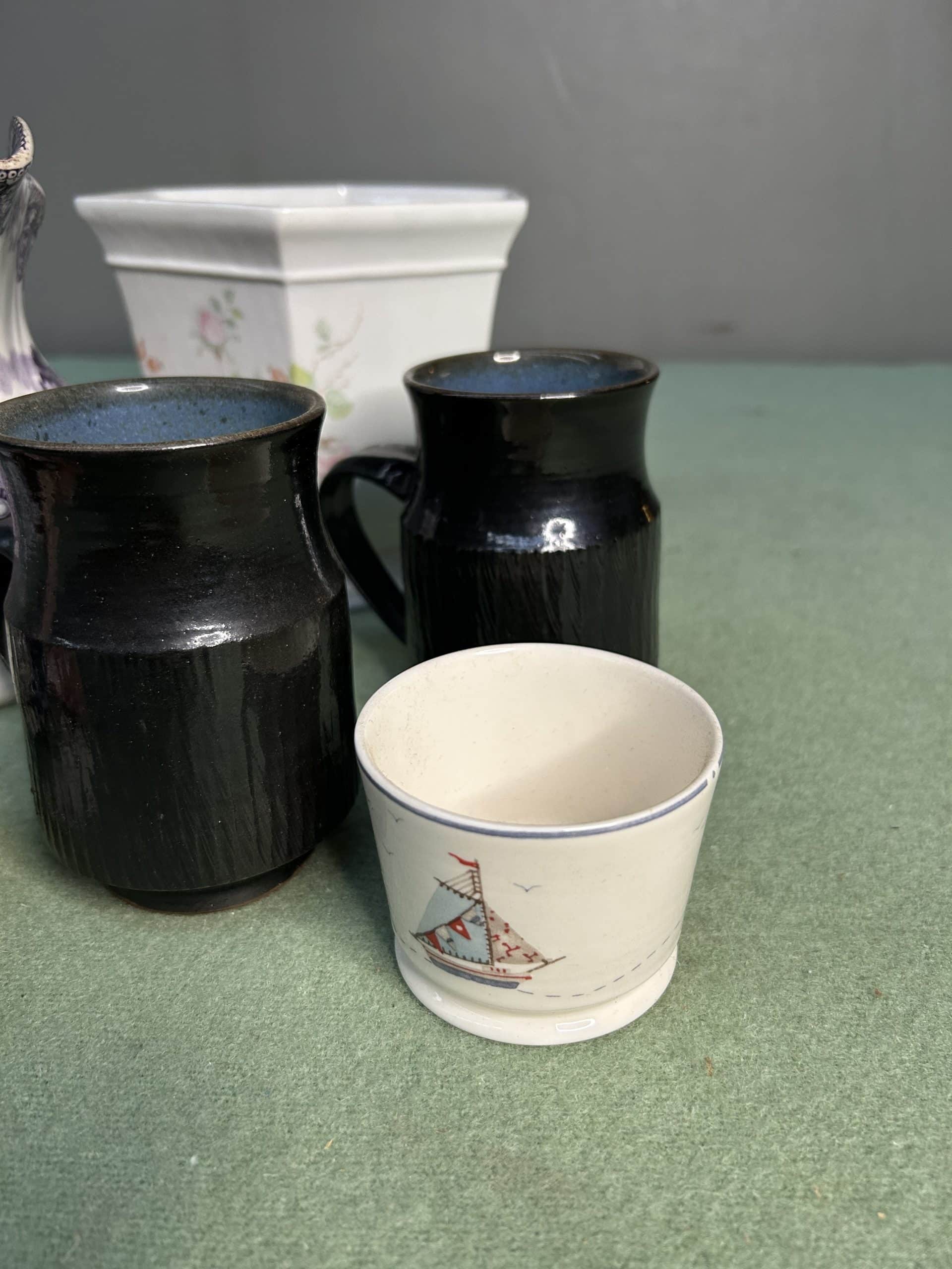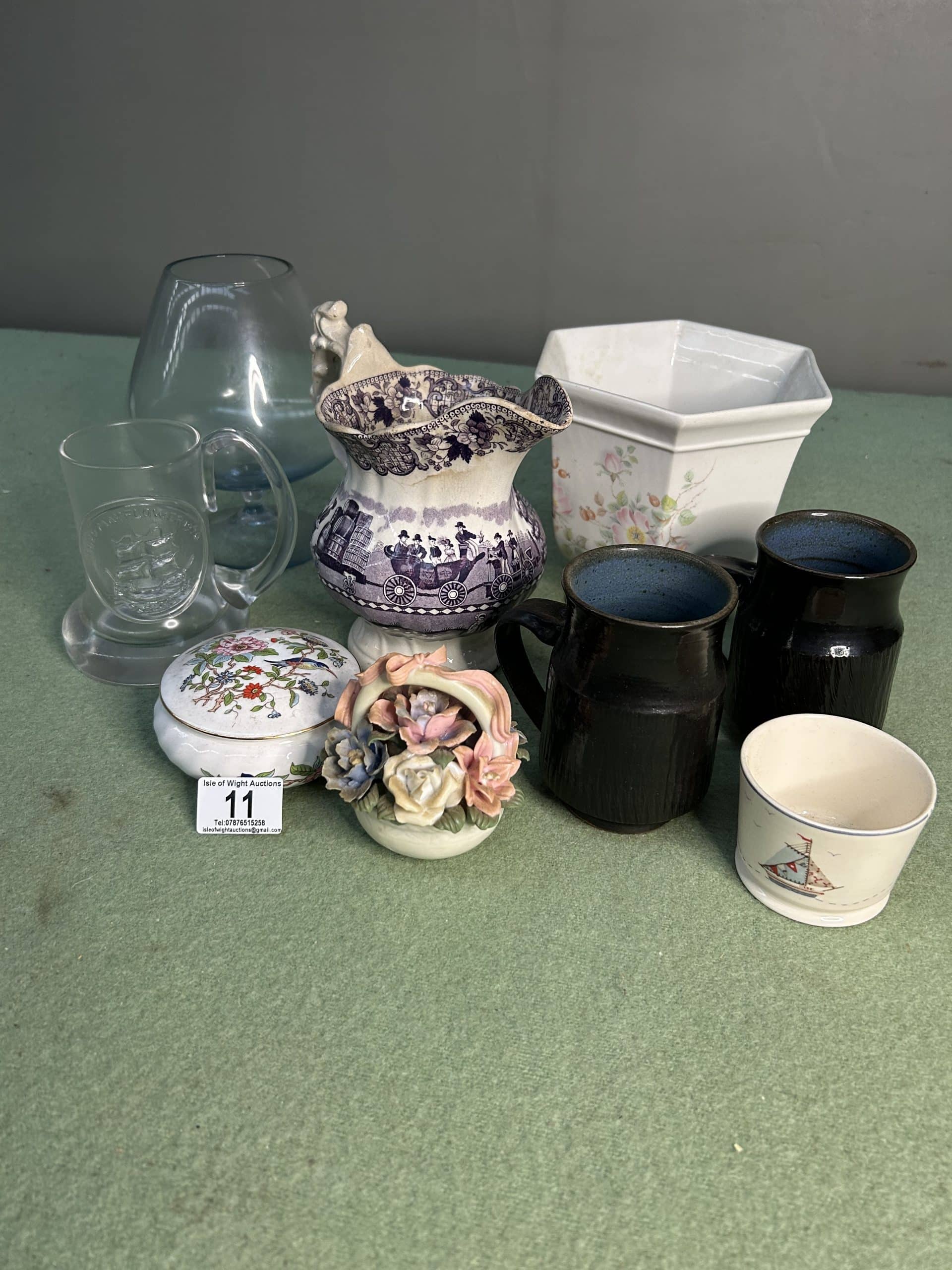 Wren Auction (Part One)| Item description: | Mixed Lot including large brandy glass, trinket pot, bowls, decrotive jug and a pair of mugs |