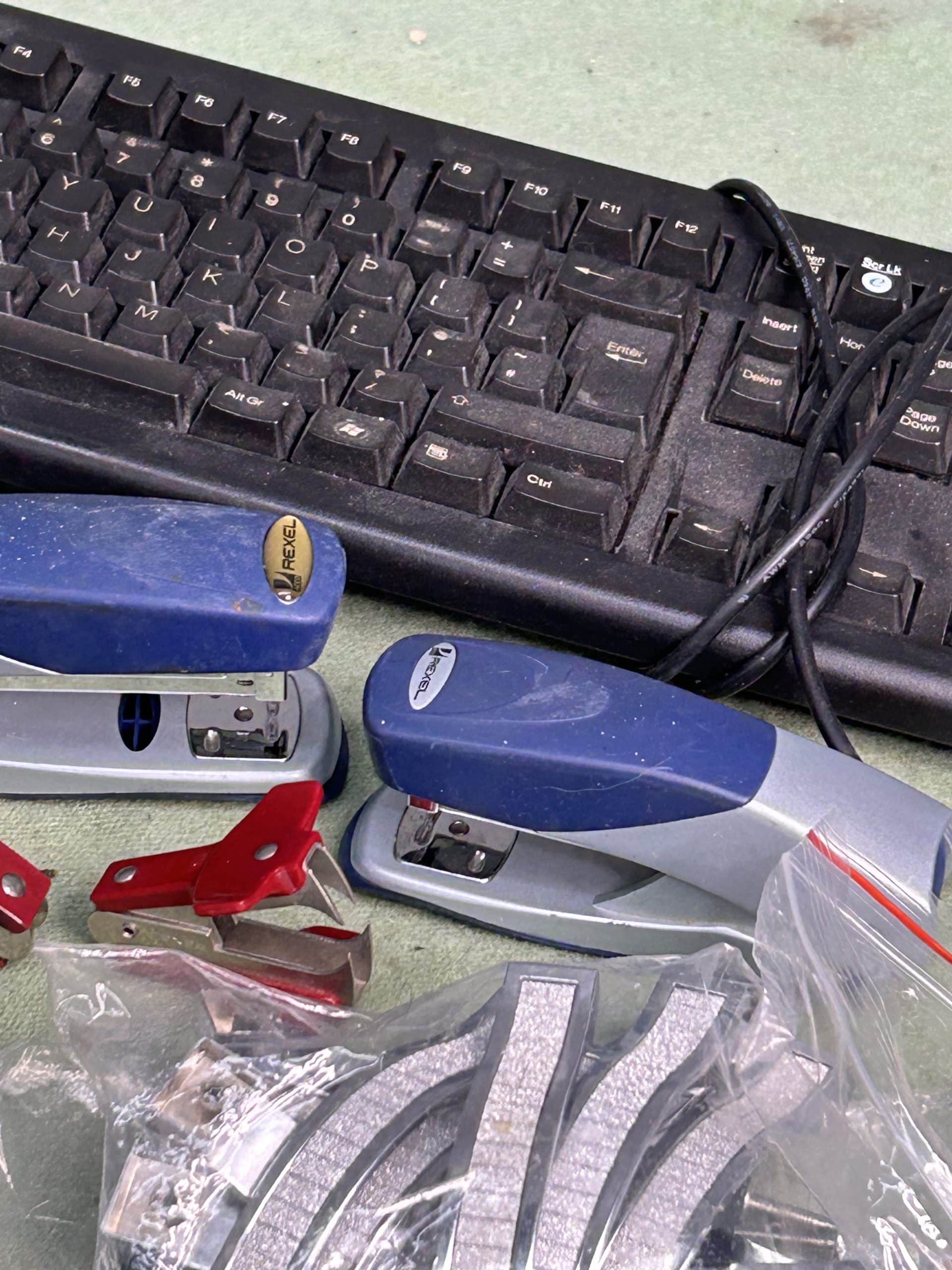 Gillian’s Auction| Item description: | Mixed Lot includes keyboards, quantity of door handles, staplers, paperweight etc |