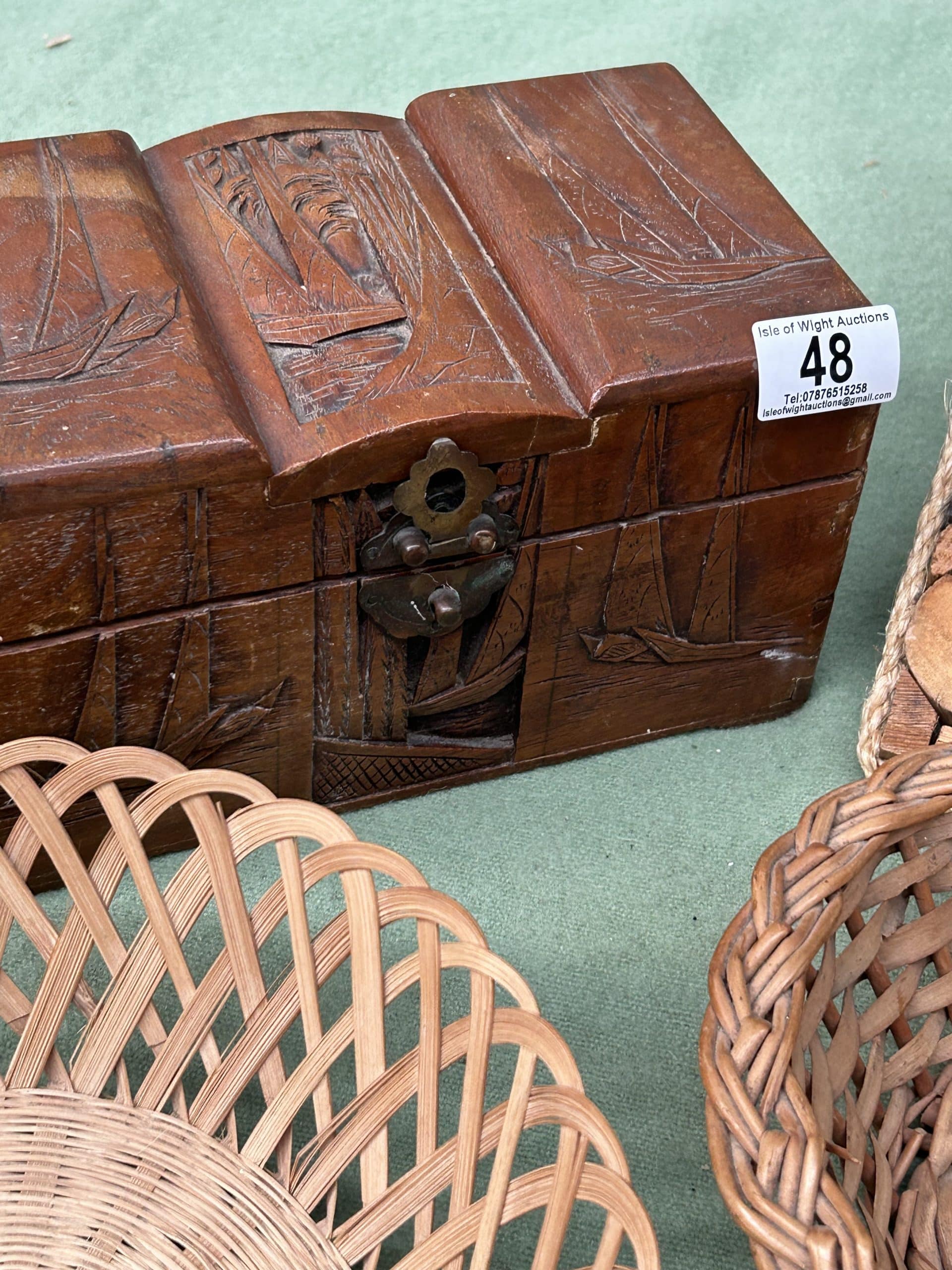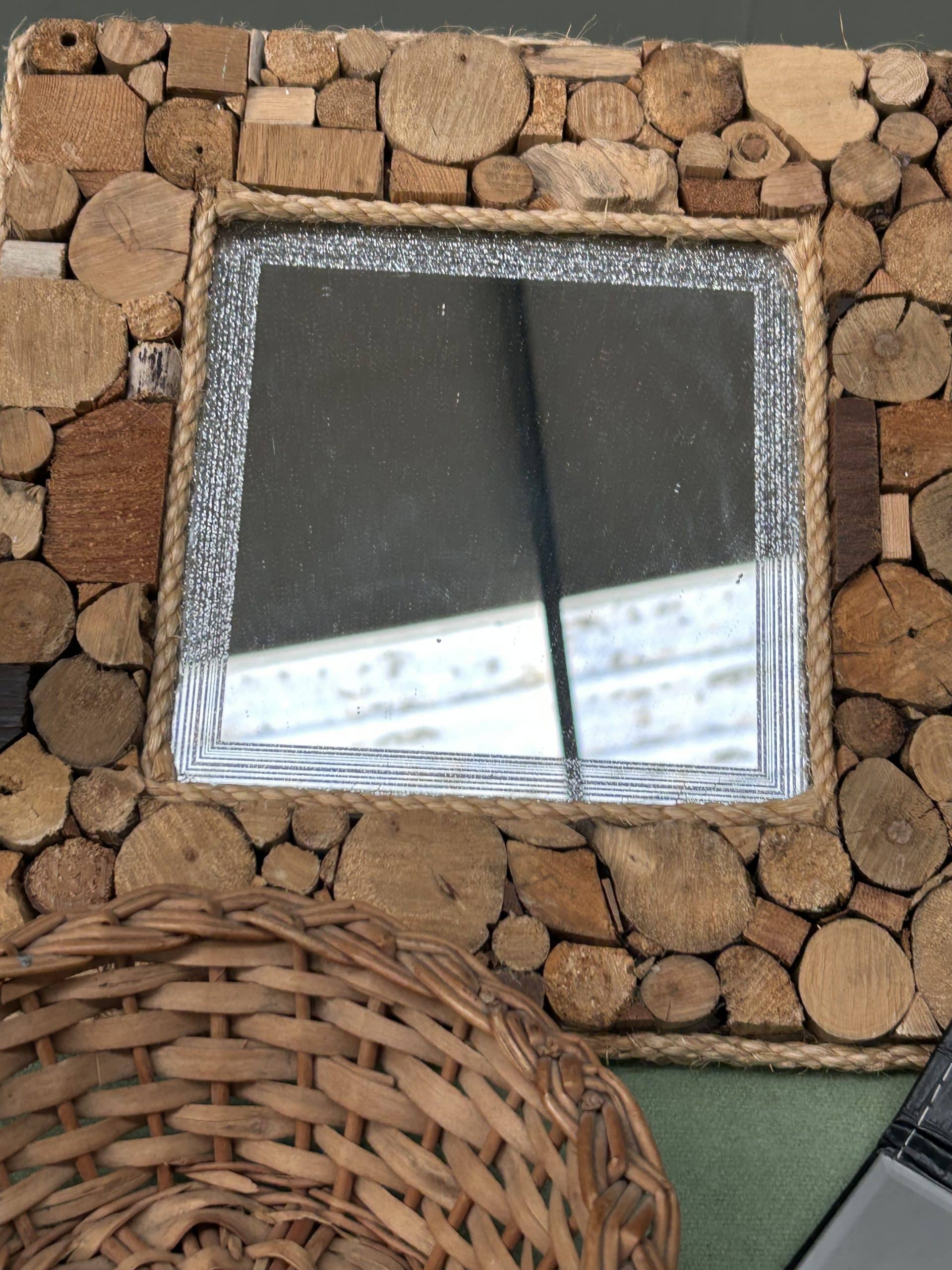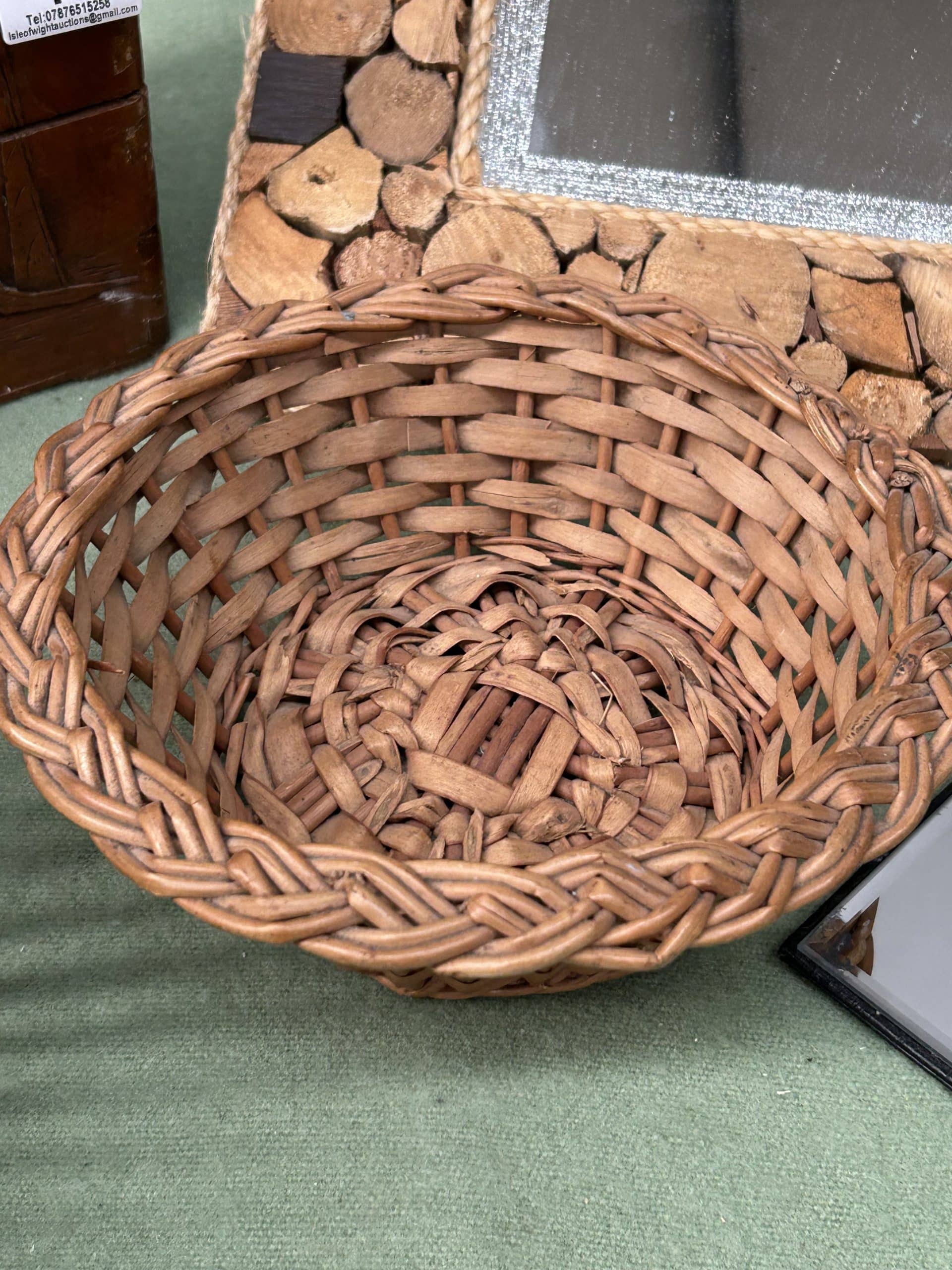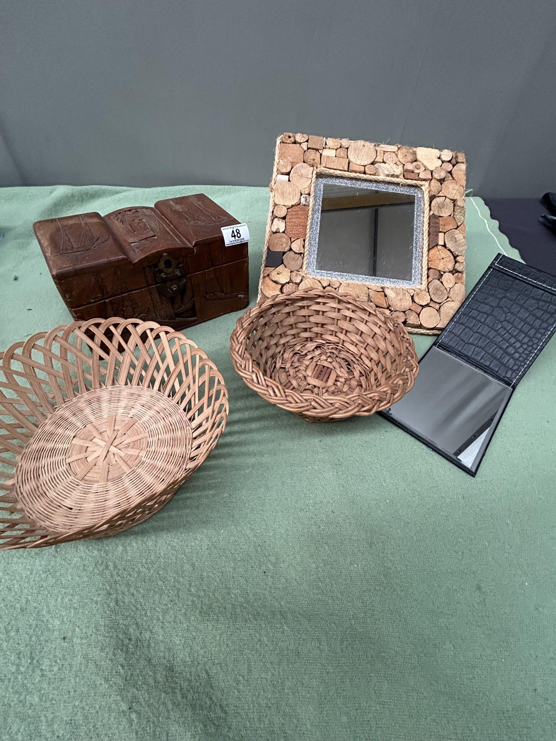 Eleanor’s Auction| Item description: | Mixed Lot includes cork mirror, baskets, small mirror and wooden box (needs repair to hinge see photo) |