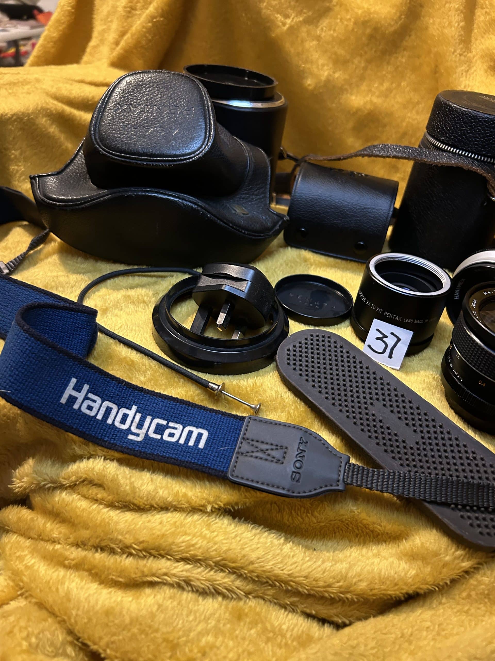 Sam’s Auction| Item description: | Pentax camera set up including three lenses in cases, light unit, flash unit, carry case and neck strap and other sundries as can be seen in the photos untested |