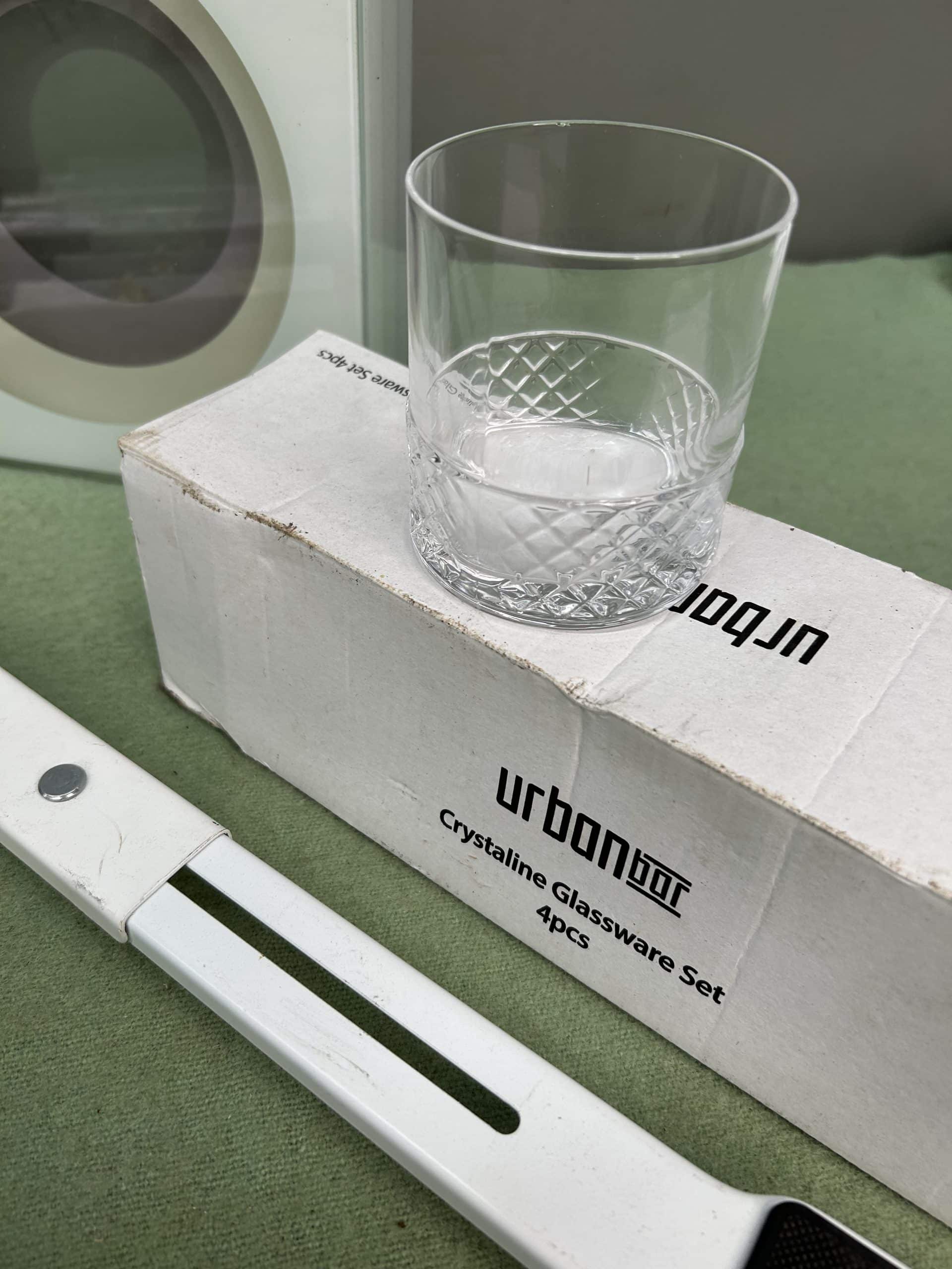Tilly’s Auction (Part 2)| Item description: | Mixed Lot includes a pair of appliance moving wheels, glasses in box, Jenga and retro habitat vase |
