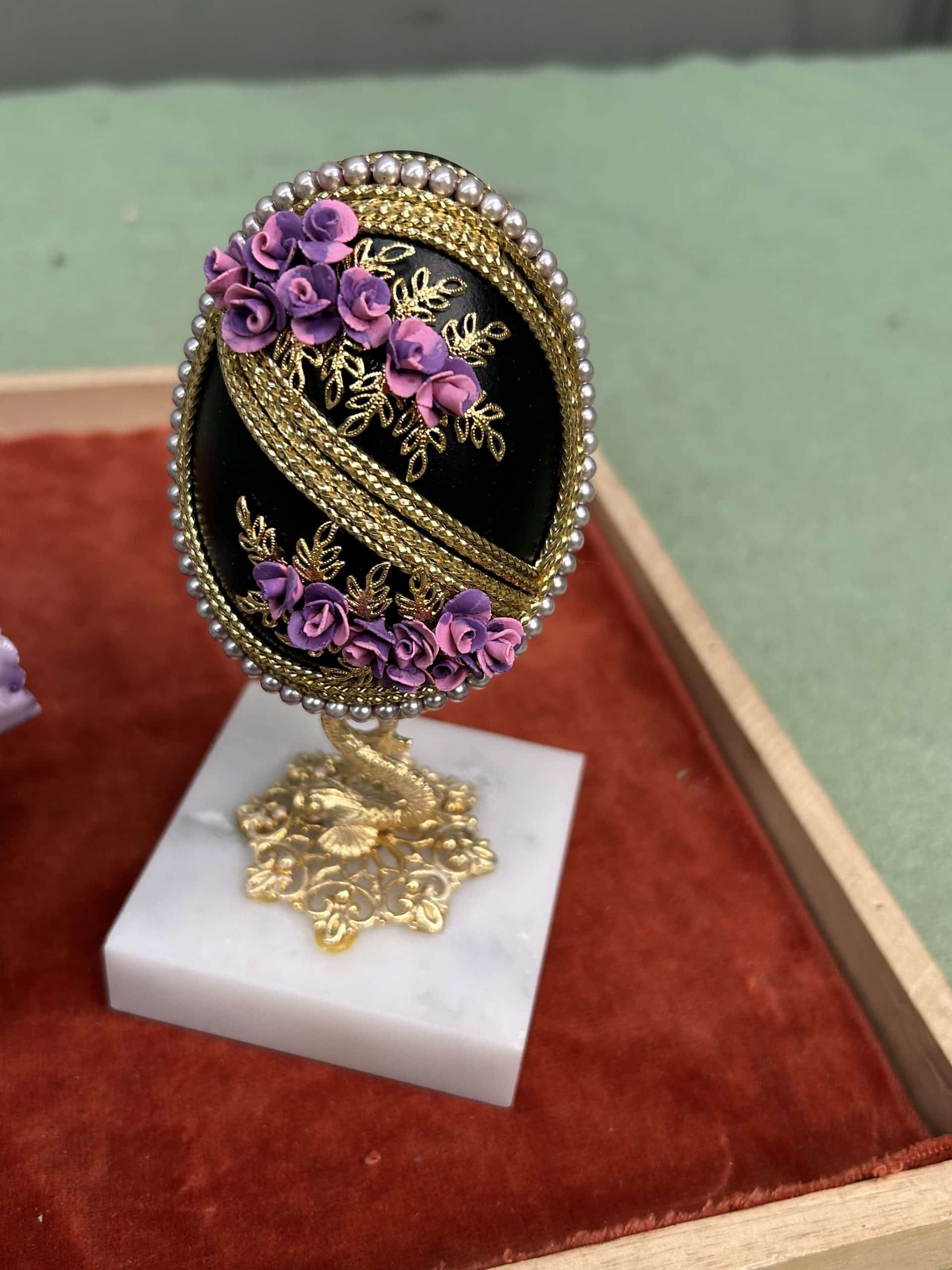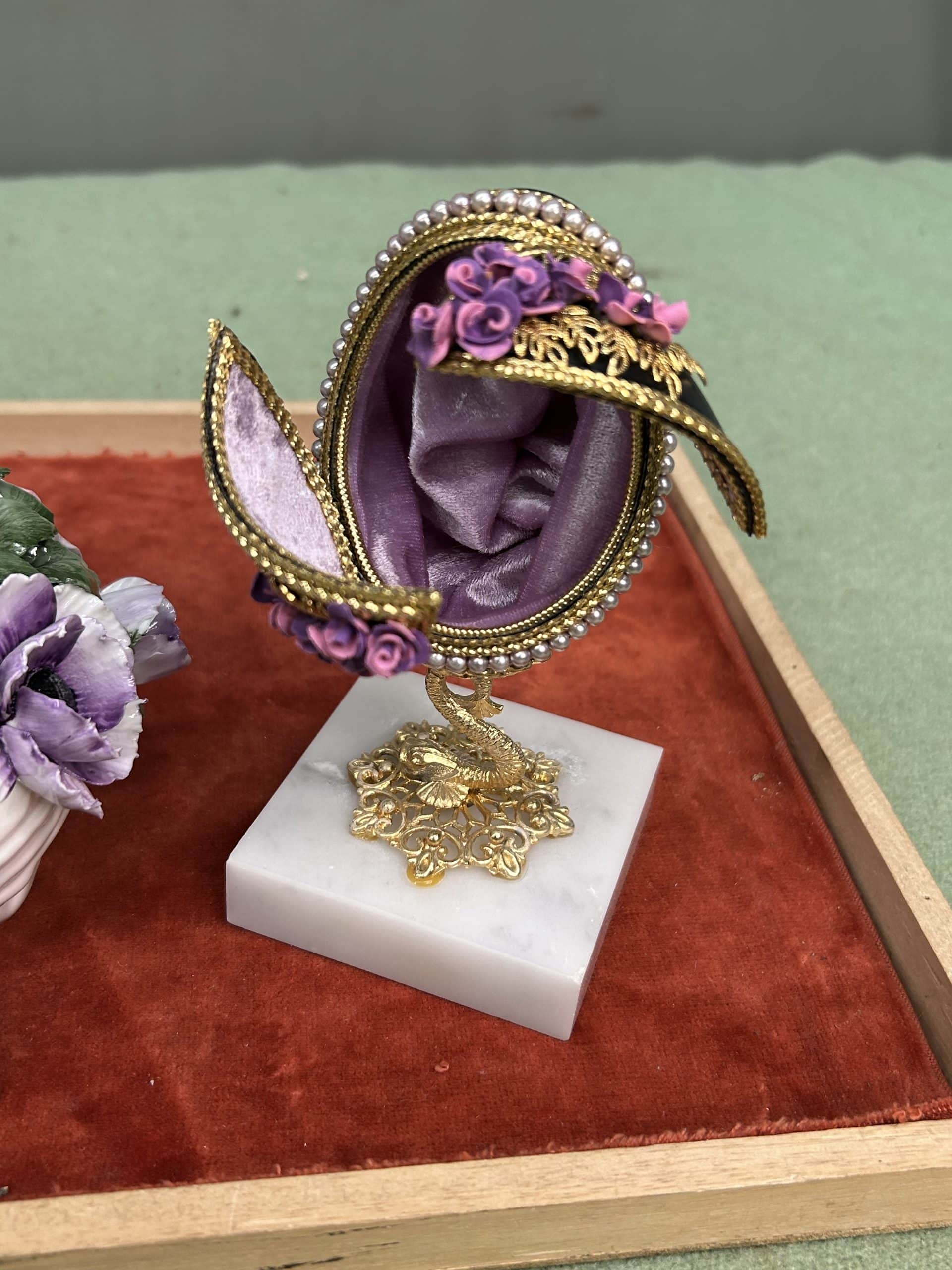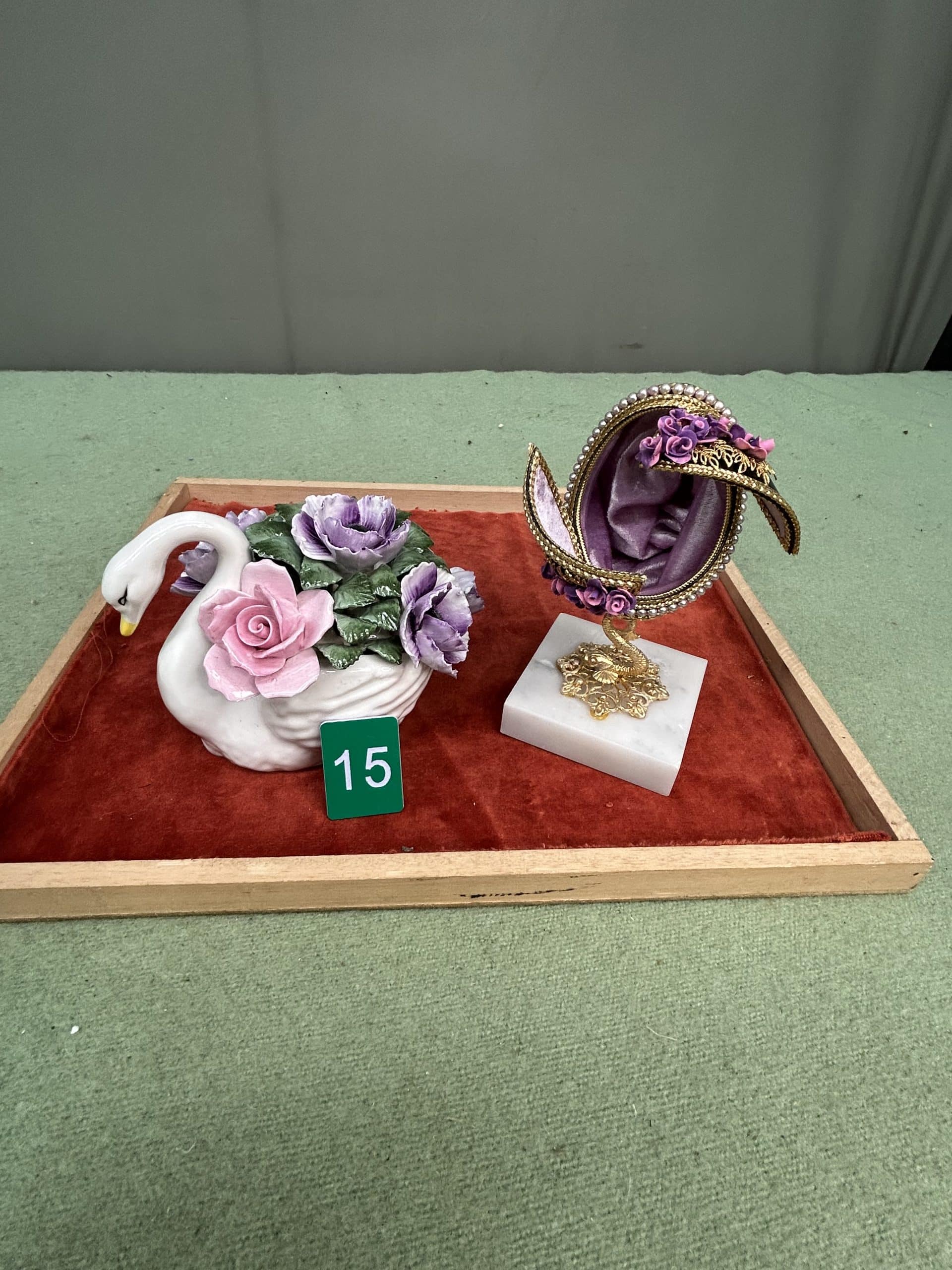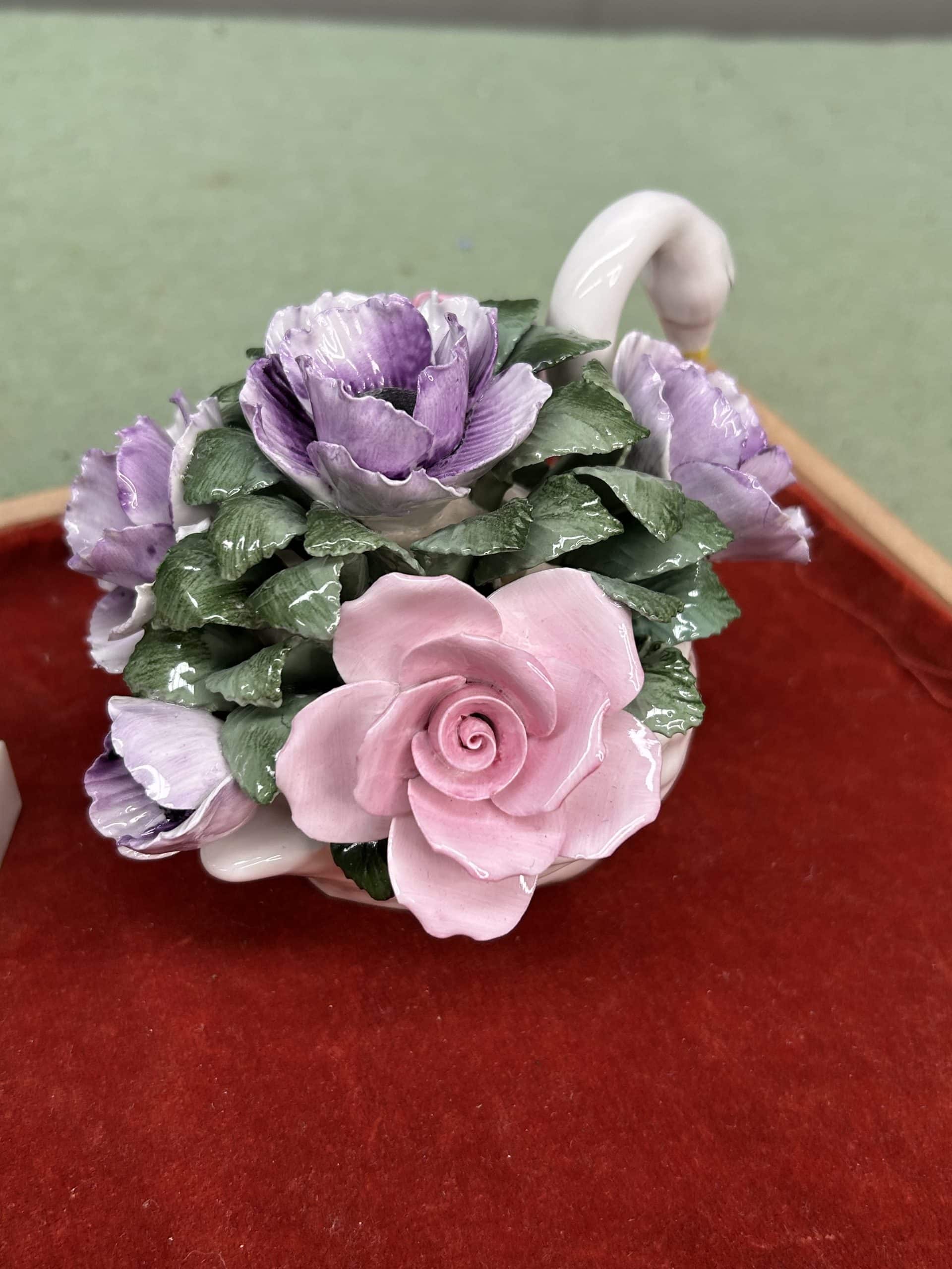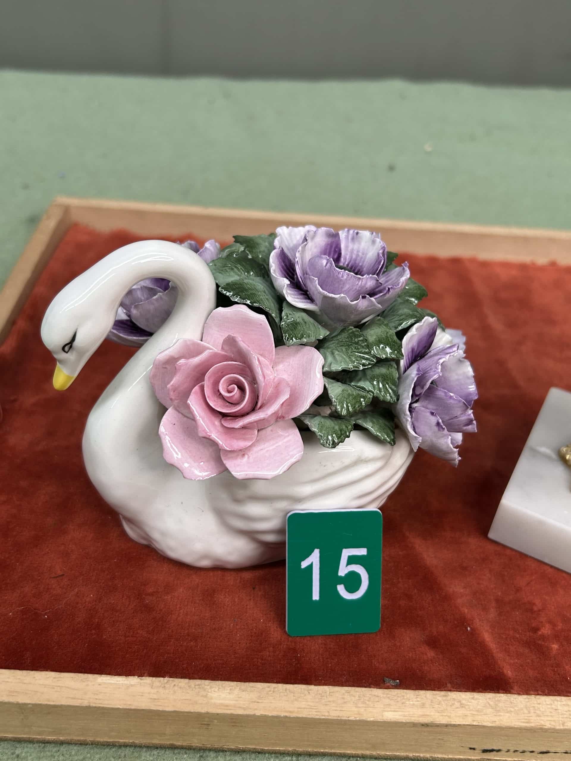 C & E Auction| Item description: | Decorative swan with flowers plus purple display egg fair condition |