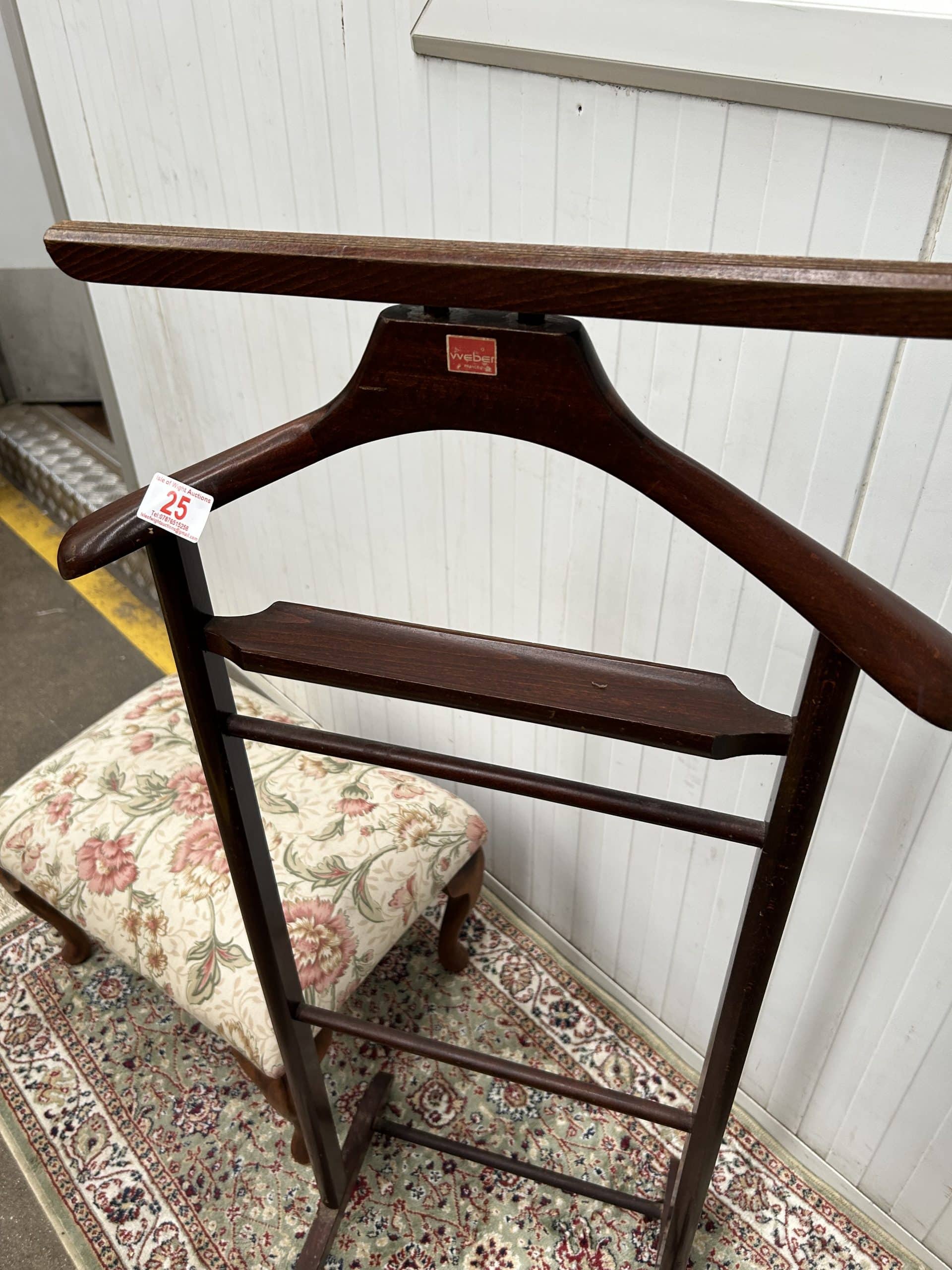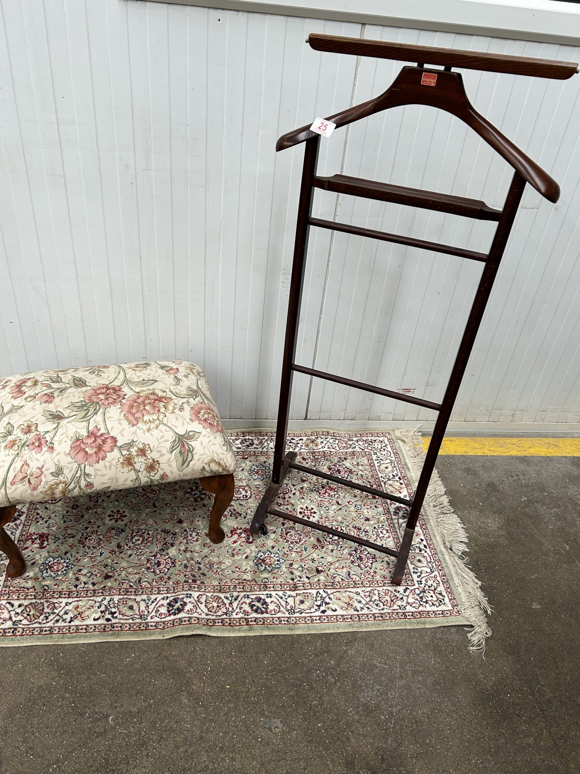 Tilly’s Auction (Part 2)| Item description: | Vintage wooden valet stand and tapestry foot stool (carpet not included) |