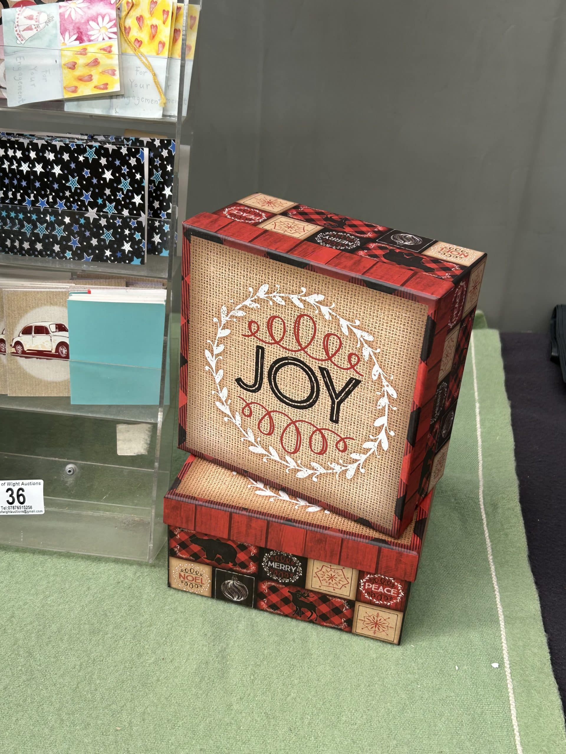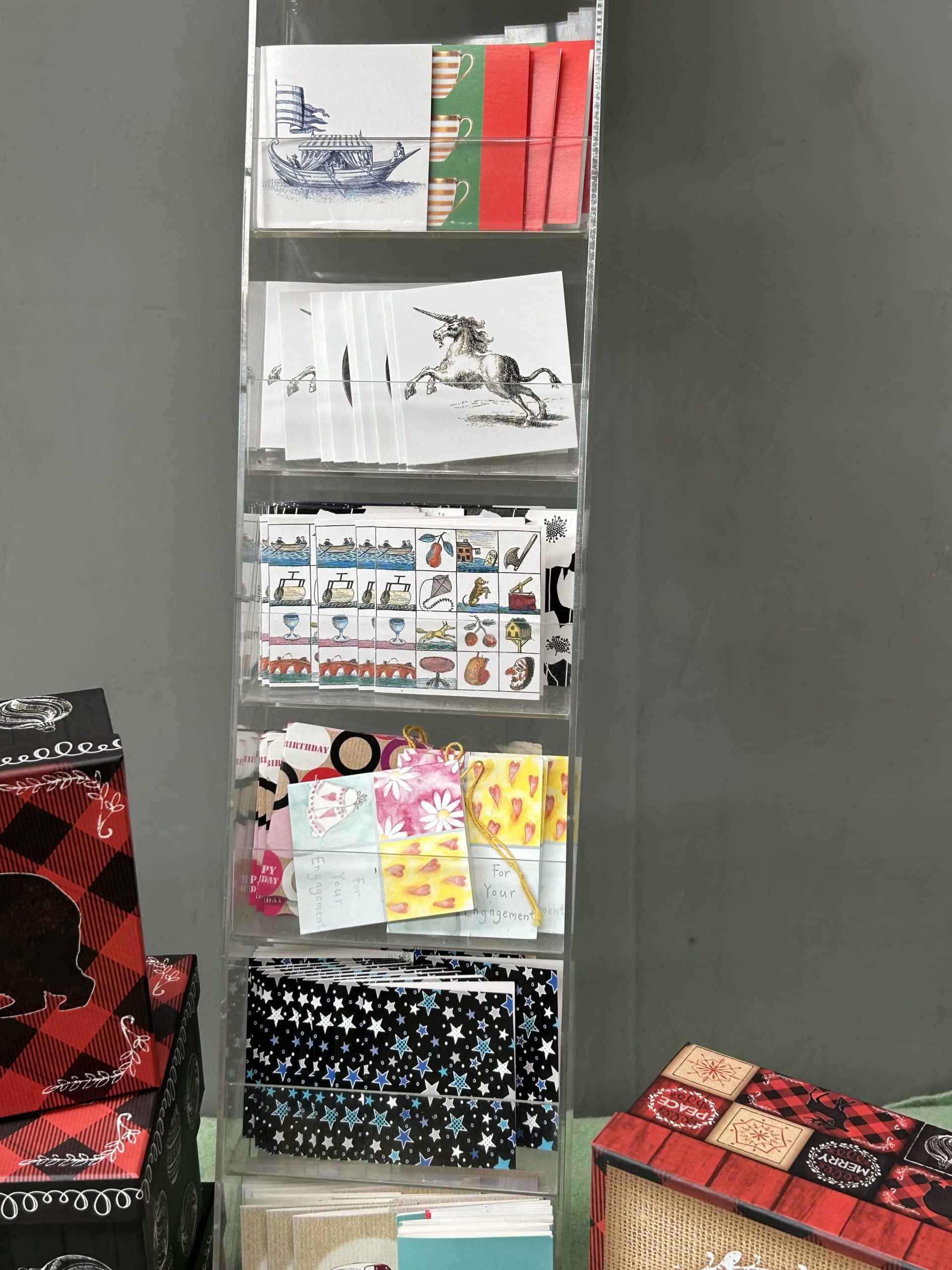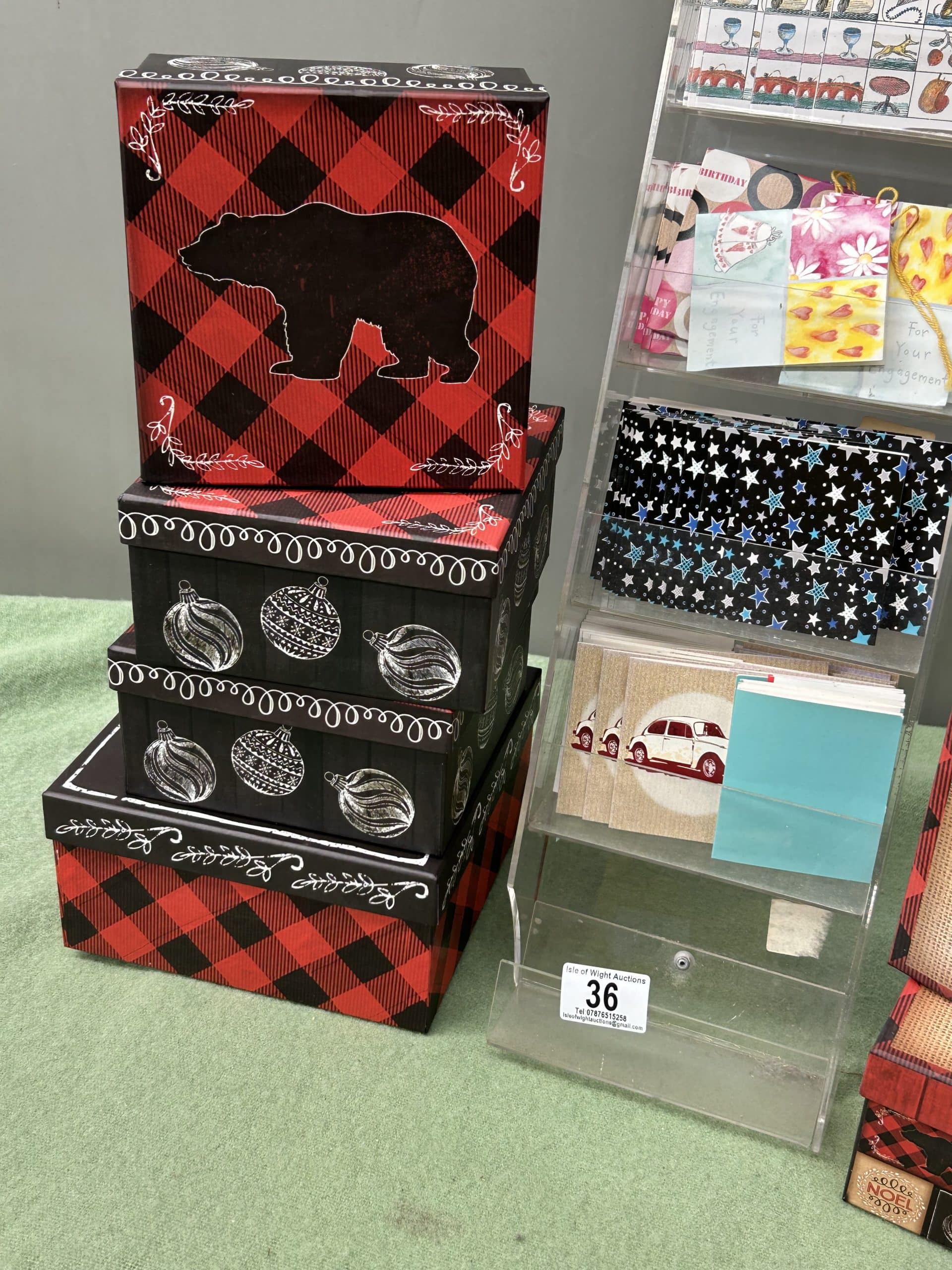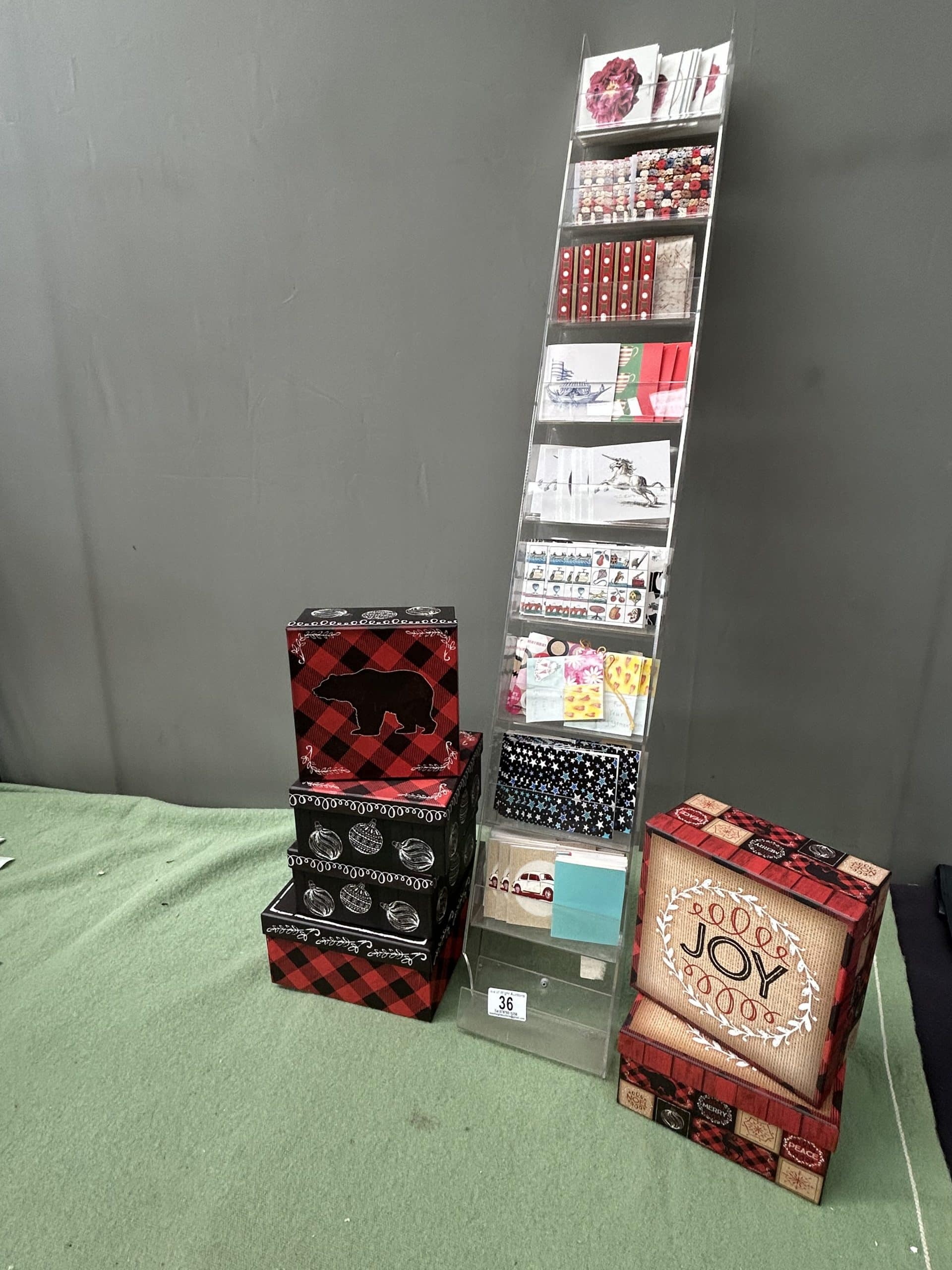 Eleanor’s Auction| Item description: | Perspex gift card rack includes a good quantity of cards, plus six gift boxes |