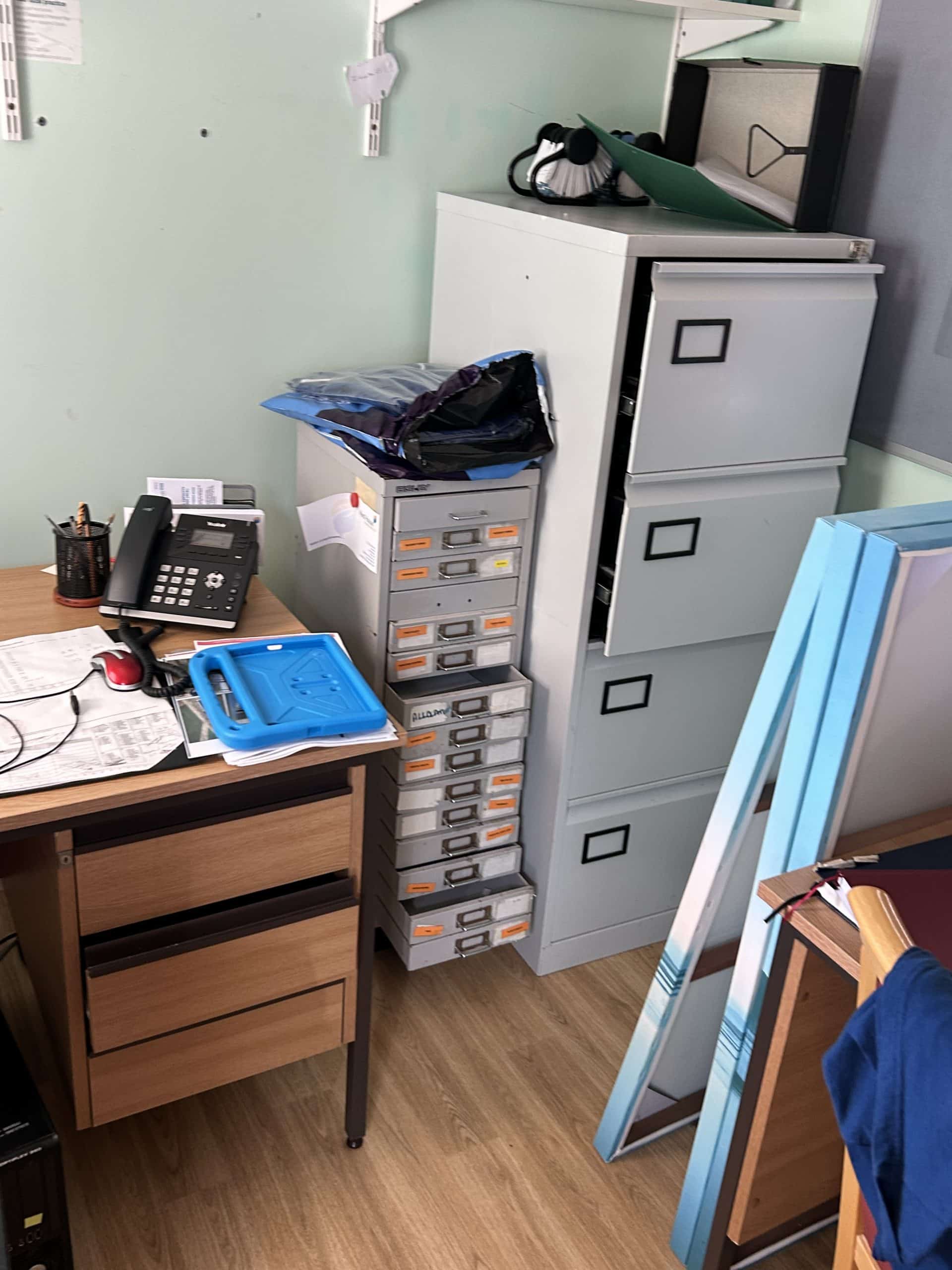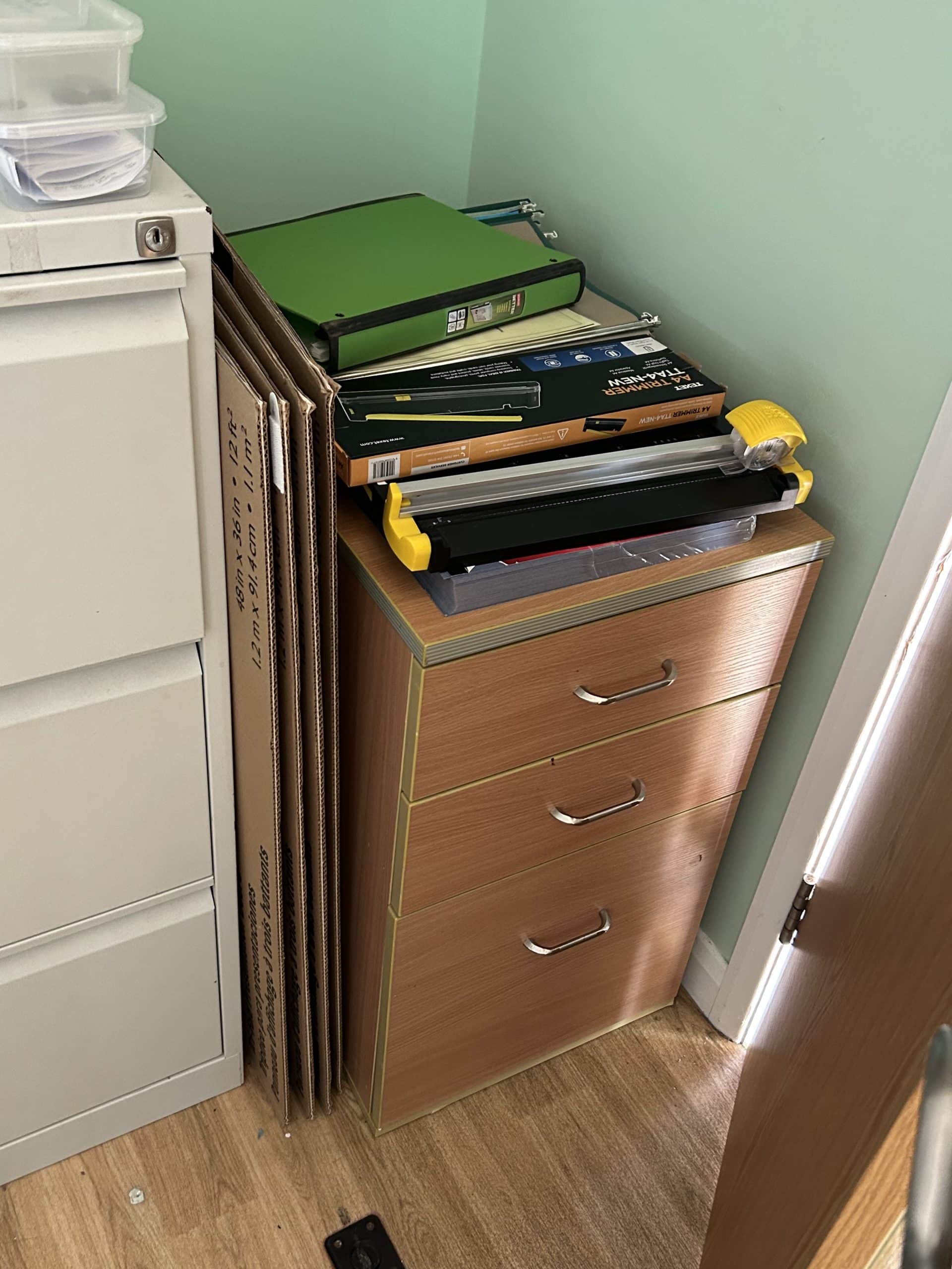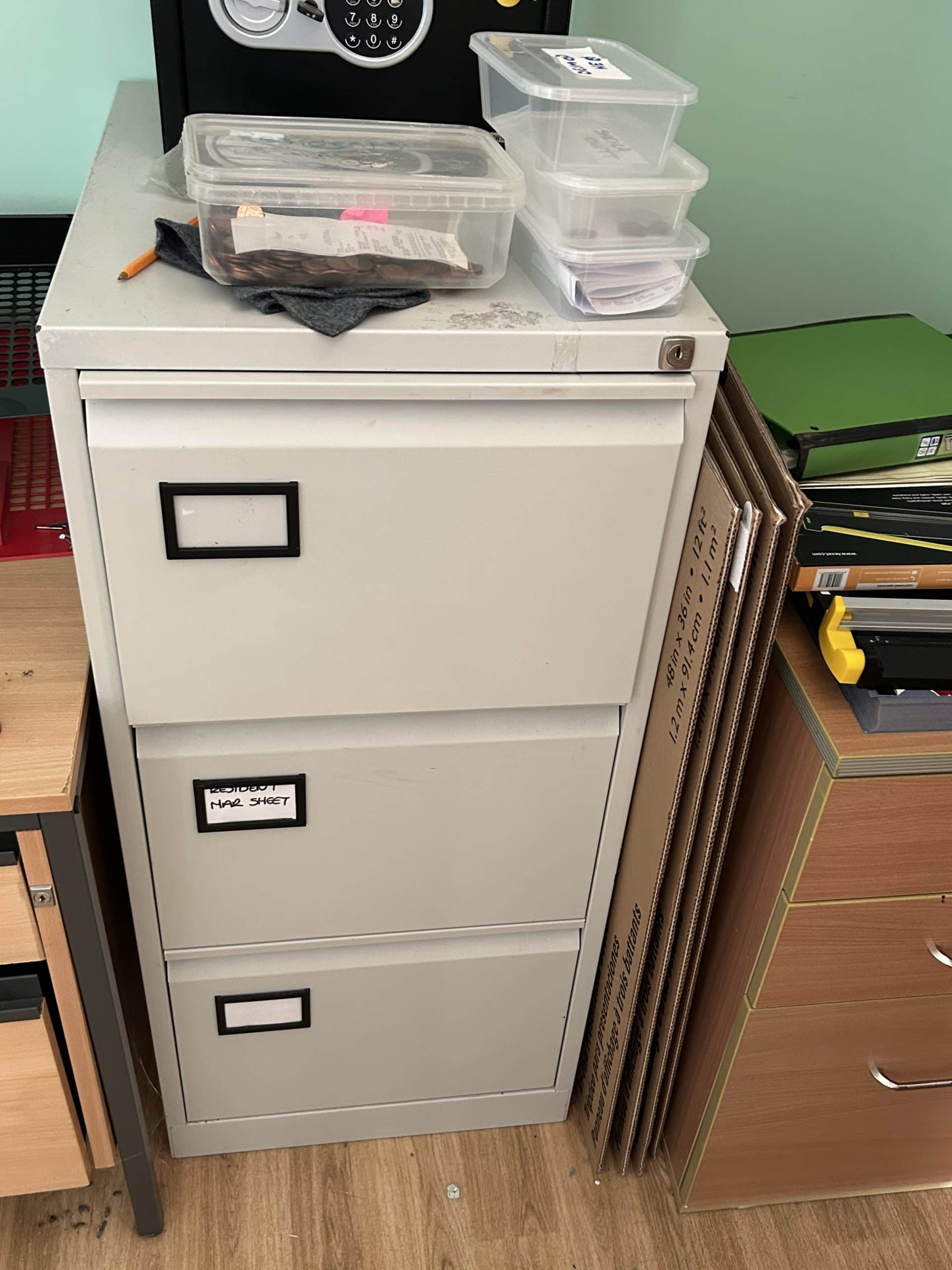 Lot 80: Three Filing Cabinets 2 metal & 1 wooden