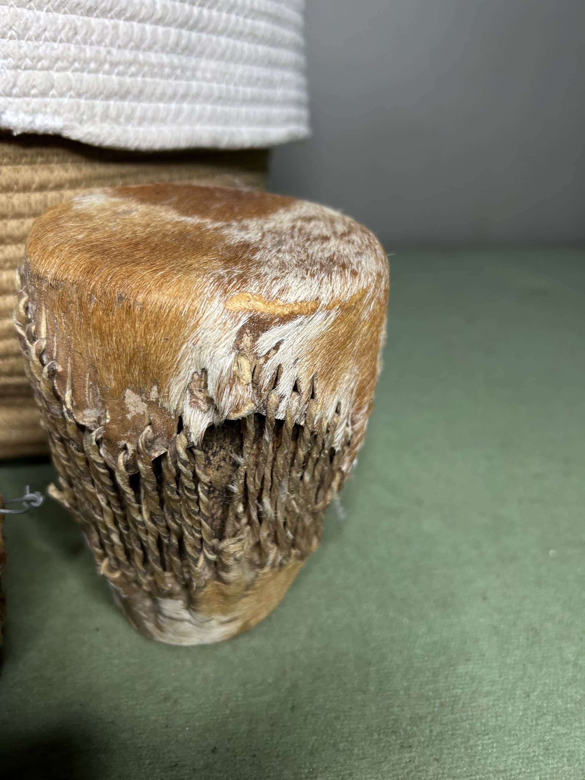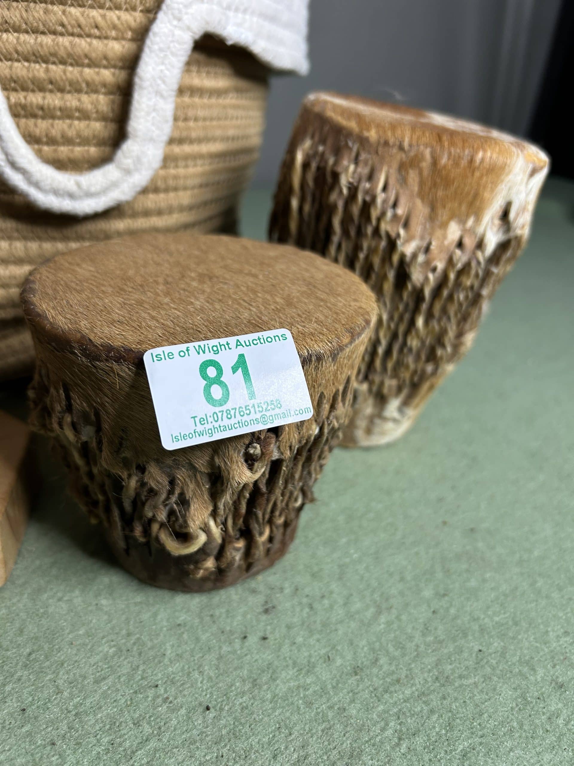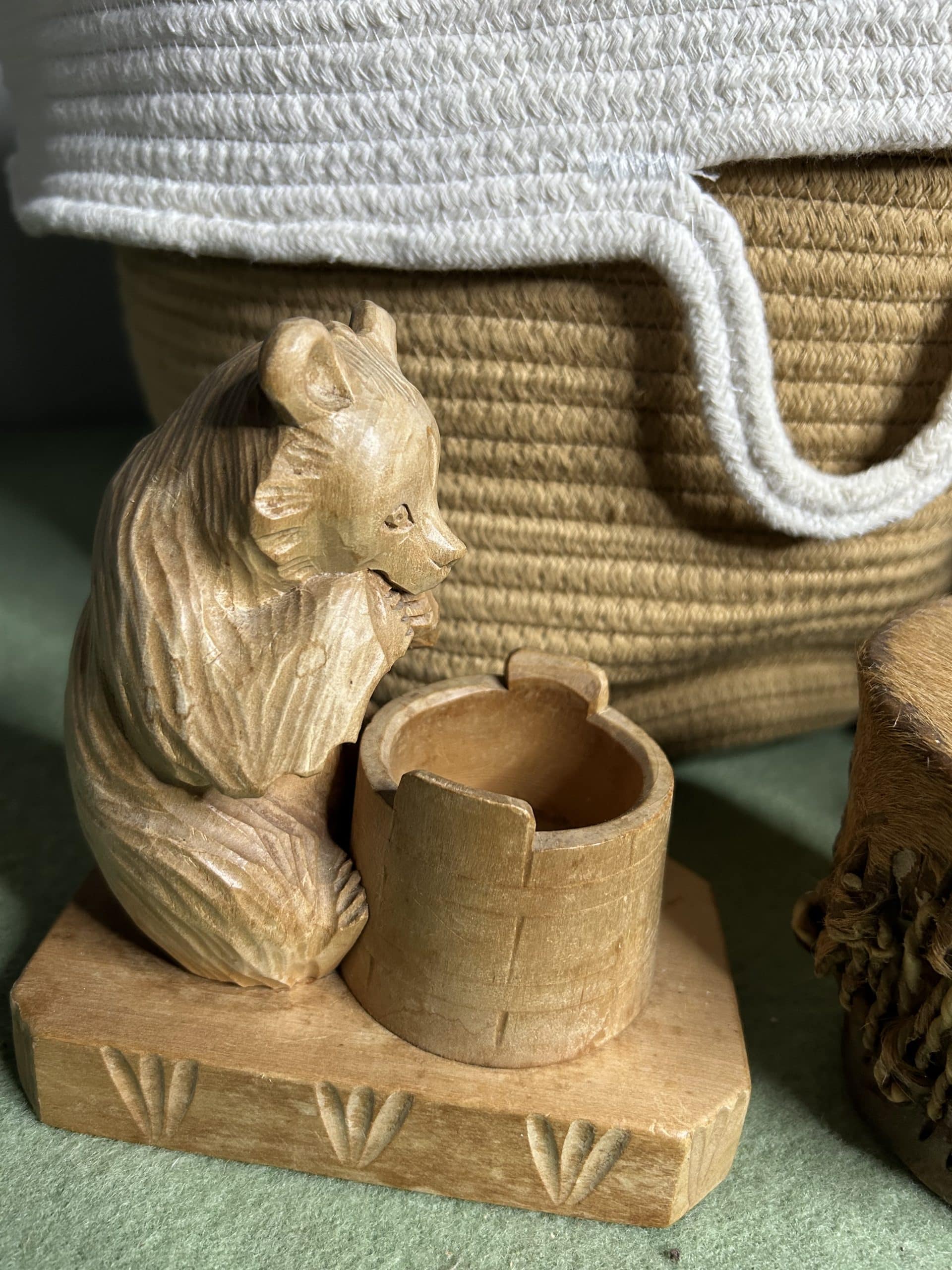 Clear Out| Item description: | Mixed Lot includes two small drums, carved wooden bear and bowl, woven basket |