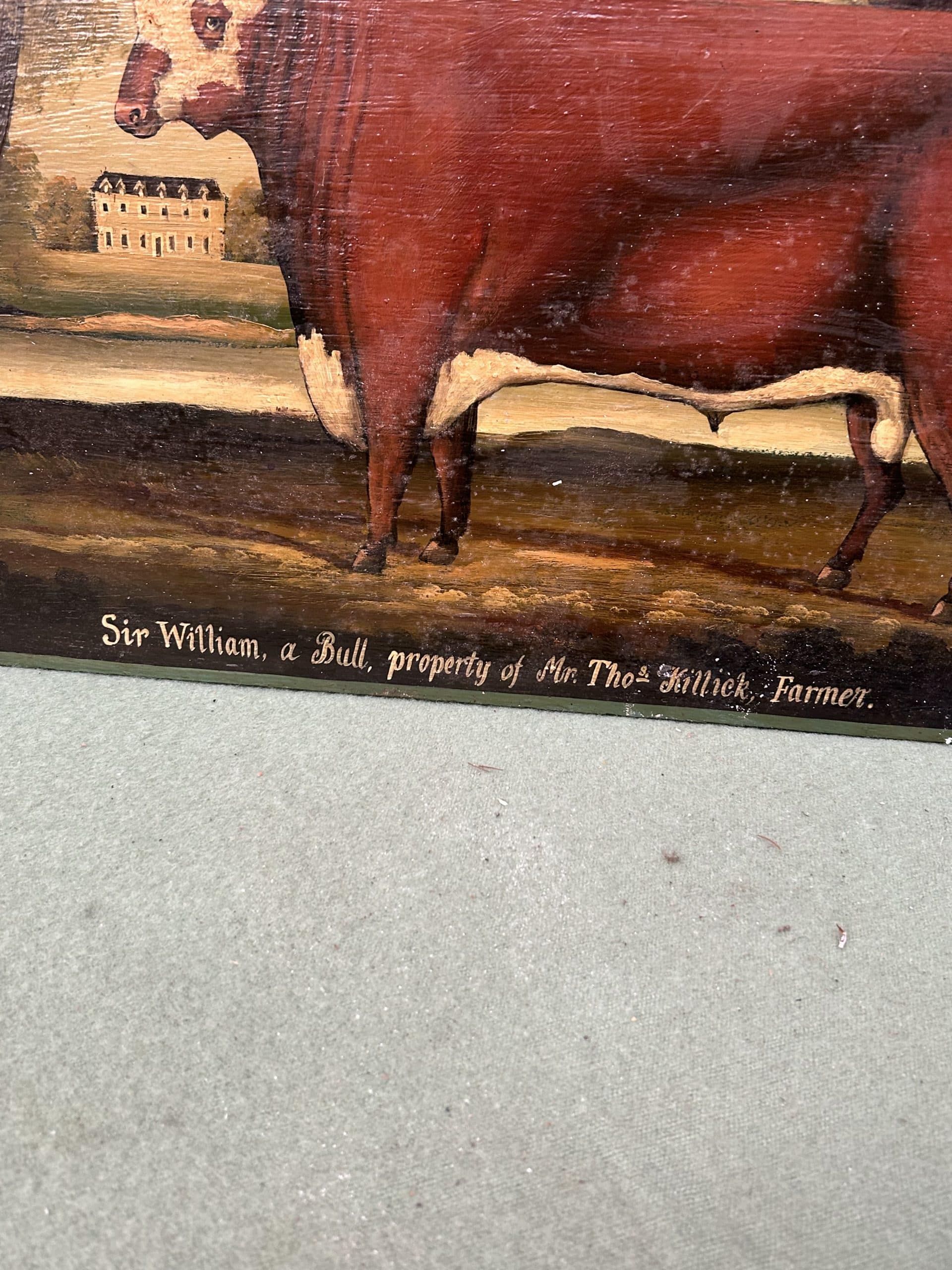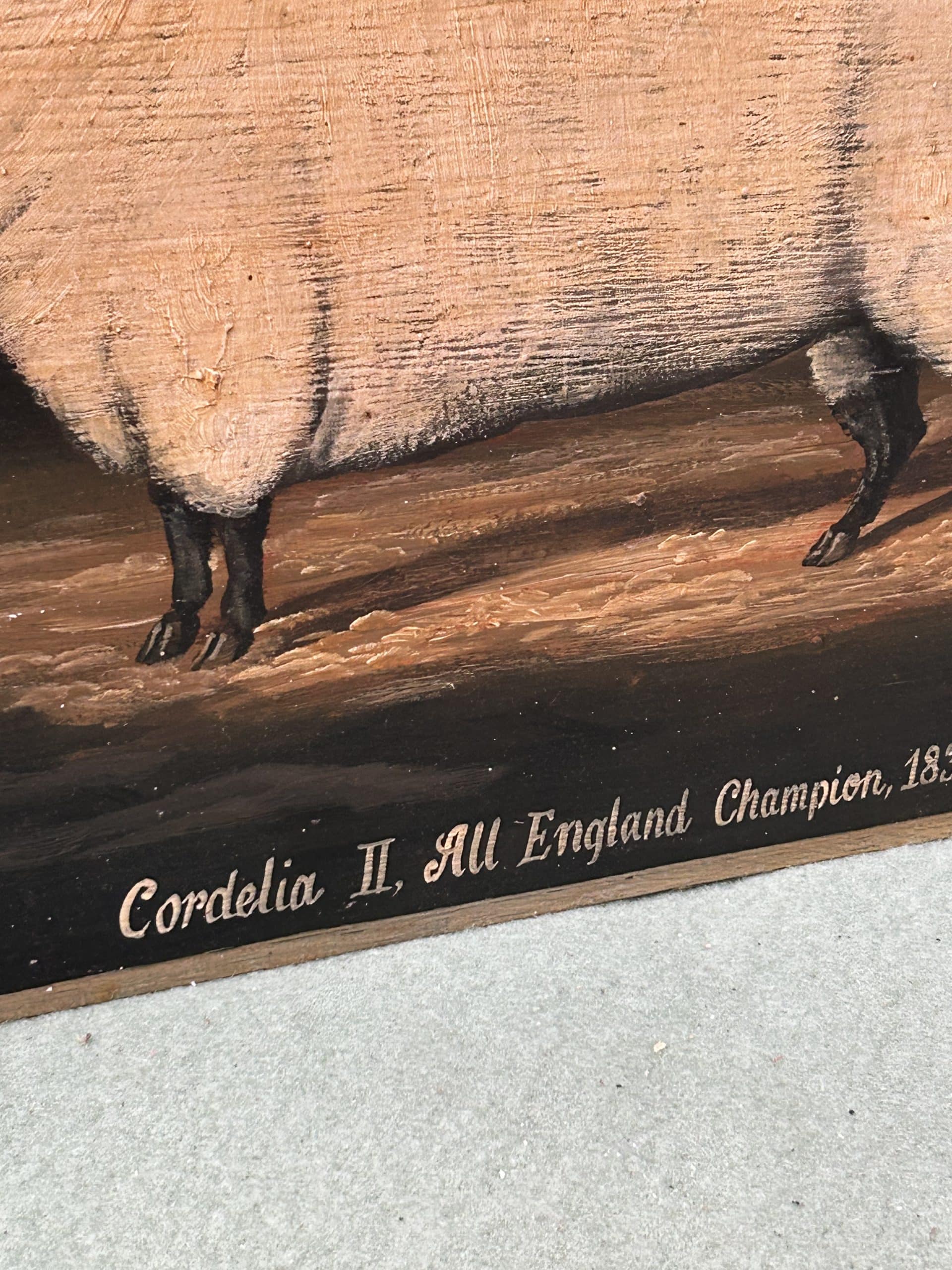 Tilly’s Auction (part three)| Item description: | Wooden wall plaques featuring prize winning livestock Sir William the bull and Cordelia II the Sheep |